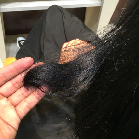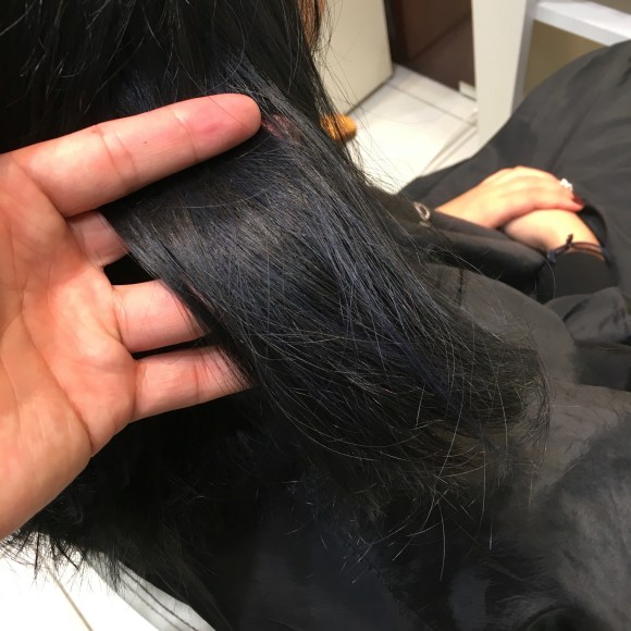 普通の美容師さんならビビってしまうくらいに濃すぎるくらいのブルーを配合し、塗布。