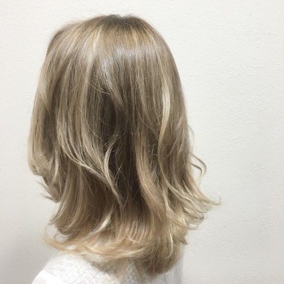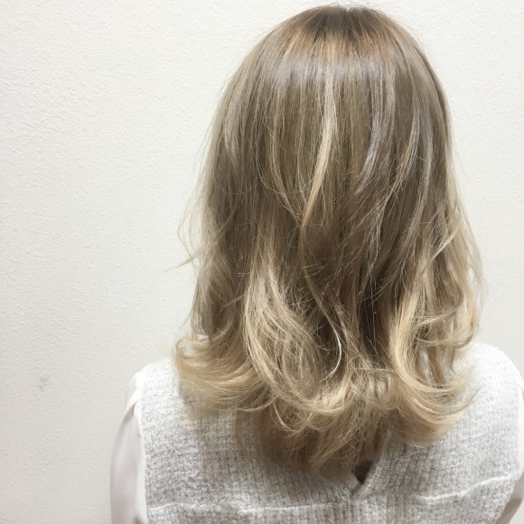 - イルミナカラーのアッシュを使って究極の外国人風のアッシュに☆ベースもトーンダウンさせるため8レベルをチョイス☆毛先は塗布せずベースのみ。