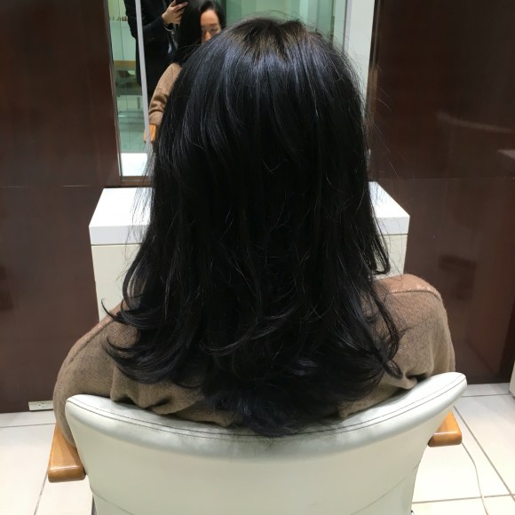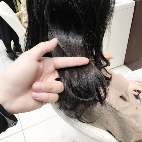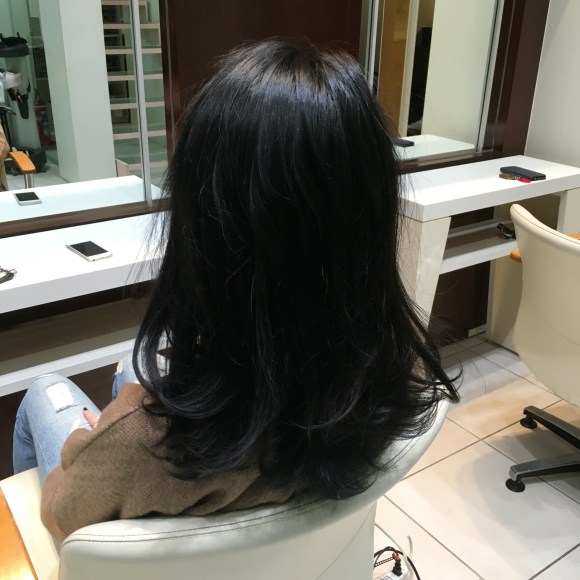 毛先の青黒さ。全体も黒グレーのような。